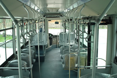 武器一:快速公交車的底盤距地面僅36CM,和站臺一樣高。車廂內(nèi)部高度達到2.4米,寬2.5米;車內(nèi)共36個座位,最多能載92人;車內(nèi)走道十分寬敞,兩側(cè)各有13個拉環(huán),高約1.8米,舉手就可拉住;駕駛座獨立半包圍,能使司機舒適安心駕駛。