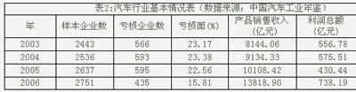 表2:汽車行業(yè)基本情況表(數(shù)據(jù)來源:中國汽車工業(yè)年鑒)