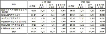 重慶長安汽車股份有限公司2010年1月份產(chǎn)、銷快報(bào)數(shù)據(jù)如下: