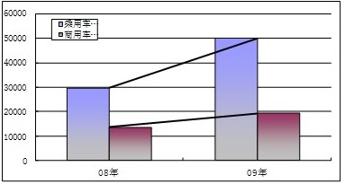 09年合肥汽車銷量達(dá)69194輛,較08年增長(zhǎng)60%之多。其中乘用車銷量49916輛,較去年增長(zhǎng)67.74%;商用車銷量19278輛,較去年增長(zhǎng)41.76%。從下圖可以看出,乘用車仍然是合肥汽車市場(chǎng)的主體,增長(zhǎng)速度也快于商用車。