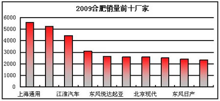 2009年,各汽車廠家在合肥這個(gè)蓬勃發(fā)展的舞臺(tái)上大展身手,創(chuàng)下新的銷售記錄,其中,銷量前十廠家如下: