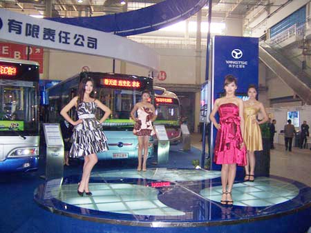 美麗的車模向參展嘉賓展示揚(yáng)子江客車的時(shí)尚與活力