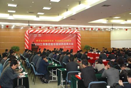 4月10日,以“科學(xué)布局協(xié)同發(fā)展,共同迎接市場挑戰(zhàn)”為主題的2010年江汽集團(tuán)客車板塊供應(yīng)商大會在安凱科技交流中心三樓報告廳隆重召開。來自全國各地的100多名供應(yīng)商代表和安凱股份公司汽車研究所、質(zhì)管部、售后服務(wù)部代表參加大會。公司領(lǐng)導(dǎo)王江安、童永、董剛、江淮客車公司副總經(jīng)理胡少峰出席會議。