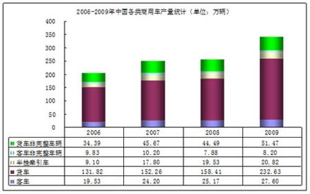 圖表1:2006-2009年中國各類商用車產(chǎn)量統(tǒng)計(jì)情況