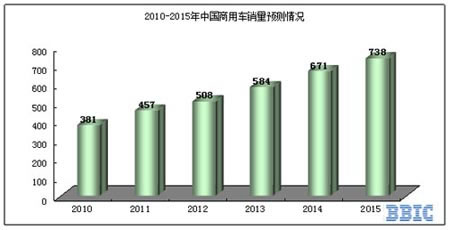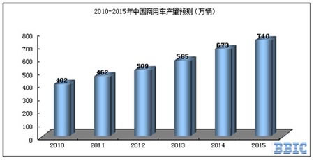 圖表3:2010-2015年中國商用車產(chǎn)量預(yù)測(cè)