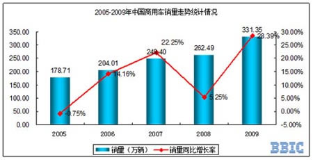 2、2005-2009年商用車產(chǎn)量統(tǒng)計(jì)與走勢(shì)分析