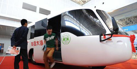 5月21日,觀眾在參觀菱形客車。在當(dāng)日開幕的“2009湖南汽車展覽會(huì)”上,由湖南大學(xué)和湖南同心實(shí)業(yè)股份有限公司自主研發(fā)制造的菱形客車成為一大亮點(diǎn)。據(jù)工作人員介紹,這款菱形客車采用柴油動(dòng)力,底盤呈菱形,車輪呈菱形分布,具備阻力小、轉(zhuǎn)彎半徑小、安全性高等特點(diǎn)。