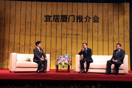 在宜居廈門推介會(huì)上,大金龍副總經(jīng)理徐向東(中)暢談大金龍非凡的發(fā)展歷程