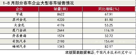 1~8月部分客車企業(yè)大型客車銷售情況