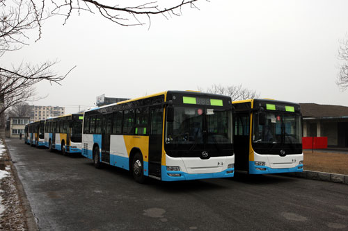 此次出口哈薩克斯坦的40輛黃海公交車,為10米兩級踏步柴油普通公交車。整車延用了2008年首次出口哈國的車身造型,簡潔美觀、方正大氣;超大的前風(fēng)檔和側(cè)窗及車內(nèi)空間,寬敞明亮,為或坐或立的乘客旅途增添了輕松、開闊、觀光的心境;發(fā)動機后置,雙門低踏板(二級踏步),乘客上下方便、便捷。由于采用了黃海自制的成熟底盤,在動力匹配和操控性能上達到最優(yōu)配置,因此在底盤和車內(nèi)配置上均未做大的調(diào)整和改動,只是針對前一批車輛在運行中出現(xiàn)的問題進行了局部的改動和優(yōu)化,產(chǎn)品的一致性得到了充分地保證和延續(xù),使得售中、售后、配件供應(yīng)等方面得到了充沛的保障。