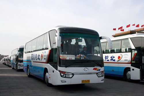 經過嚴格的考核,在全部上會客車中,素有“國車”美譽的金龍客車再次受到北汽集團的青睞,55輛“龍威”客車再一次承擔起“兩會”的服務保障工作,負責7個駐點、16個代表團的交通服務工作。