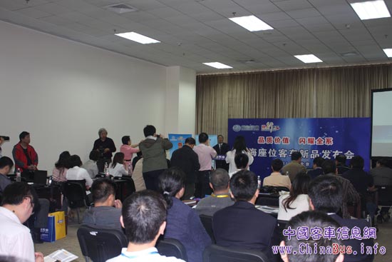 5月12號下午14:00黃海座位客車新品發(fā)布會在國家會議中心二層232B室舉行。中國公路學會客車分會鄒虎嘯理事長先生、天津原野汽車客運有限公司總經(jīng)理陳濤先生、天津春秋越野總經(jīng)理古耀軍先生、黃?蛙嚳偨(jīng)理蔣愛偉先生、黃海客車技術(shù)研究院劉鳳君院長、黃?蛙嚨|銷售公司總經(jīng)理周強先生以及各位行業(yè)大眾媒體蒞臨發(fā)布會現(xiàn)場。