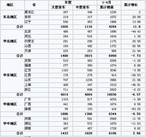 2011年1-4月全國共銷售公路客車共24416輛,與2010年1-4月同比下降2.06%。