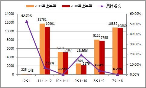 1-6月份大中型客車分米段銷量統(tǒng)計情況單位:輛,%