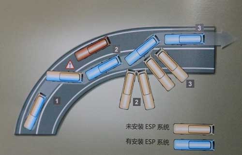 “ESP系統(tǒng)包含ABS(防抱死剎車系統(tǒng))及ASR(防側(cè)滑系統(tǒng)),是這兩種系統(tǒng)功能上的延伸。其最大的優(yōu)點(diǎn)在于它是一種‘主動(dòng)的’安全防范措施,具有將事故化解與發(fā)生之前的主動(dòng)防范能力!鼻嗄昶囅嚓P(guān)人士解釋。