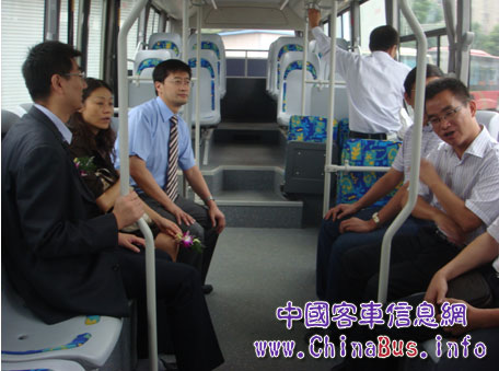 圖為參加揭牌儀式的領(lǐng)導(dǎo)和貴賓親身體驗(yàn)常隆純電動(dòng)客車(chē)