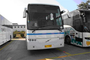 B、沃爾沃9300現(xiàn)車牌號碼為陜A76970,底盤號為105401,已2006年1月交付,車輛銘牌時間為2005年12月,總行駛里程為557,700;乘客座椅面料采用皮革材質(zhì),座椅排列為2+2的形式,座位數(shù)為39+1+1,有暖氣系統(tǒng);車輛狀況良好。