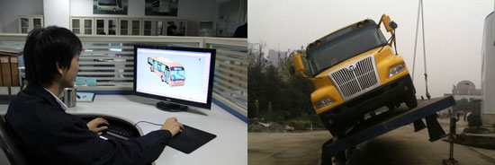 為此,在研發(fā)設計上,導入了目前國際通用的商用車開發(fā)體系,并采用最新的產品開發(fā)手段——CATIA航天三維開發(fā)軟件與CAE、CAD等計算機輔助工程、設計軟件相組合的開發(fā)方式。目前,數字化、流程專業(yè)化與開發(fā)生產合理化的設計方式已經貫穿在恒通客車的整個研發(fā)過程。新產品規(guī)劃、定型,以及風格、結構、設計方案和模擬效果等都可通過先進的計算機軟件技術來分析和呈現出來。這不僅大大降低了研發(fā)成本、縮短了新品研發(fā)周期。
