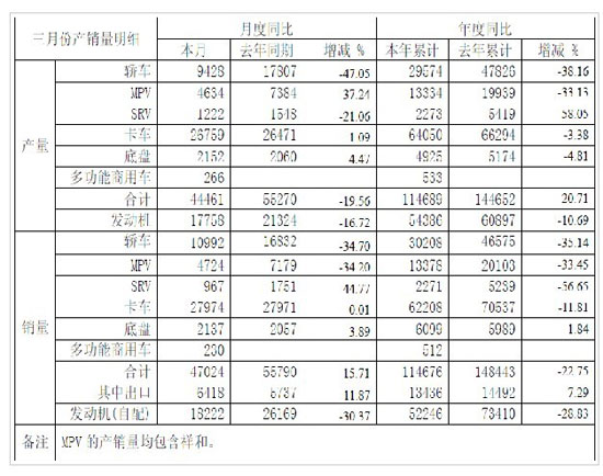 數(shù)據(jù)顯示,江淮2012年3月生產(chǎn)發(fā)動(dòng)機(jī)17758臺(tái),同比減少16.72%;發(fā)動(dòng)機(jī)自配用掉18222臺(tái),同比減少30.37%。江淮今年3月份出口6418輛,同比增長(zhǎng)11.87%。江淮汽車3月份產(chǎn)銷月度同比只有卡車、底盤和出口量增長(zhǎng),年度同比除底盤銷量外均低于去年。