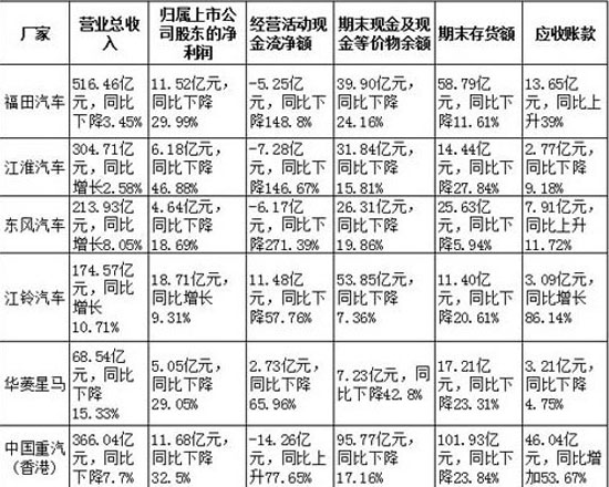 商用車行業(yè)年銷量排名前五的江淮汽車,2011年?duì)I收為304.71億元,同比小增2.58%,較為難得。但該公司去年期末現(xiàn)金及現(xiàn)金等價(jià)物余額為31.84億元,同比下降15.81%;經(jīng)營性現(xiàn)金流量?jī)纛~為-7.28億元,同比大降146.67%。江淮方表示,經(jīng)營活動(dòng)產(chǎn)生的現(xiàn)金流量?jī)纛~較上年減少22.88億元,主要系上年銀行承兌匯票兌現(xiàn)所致。盡管如此,受轎車業(yè)務(wù)拖累和商用車市場(chǎng)利空因素影響,江淮汽車業(yè)績(jī)翻身還有待時(shí)日。