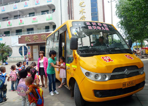 5月16日,襄城縣蘭天學(xué)校,幼兒園的小朋友從校車上下來。據(jù)了解,為保障學(xué)生的交通安全,前不久,該校按照教育部門的要求,花近30萬元購買了兩輛校車,配備有校車駕駛資格的駕駛員,專門接送學(xué)生。