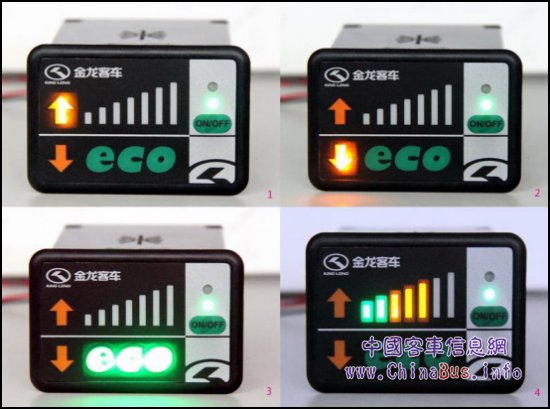 大金龍ECO-driving節(jié)油駕駛提醒系統(tǒng)通過實(shí)時采集車輛運(yùn)行數(shù)據(jù),結(jié)合車輛動力鏈和發(fā)動機(jī)的油耗特性,分析當(dāng)前車況、駕駛行為和整車油耗水平,判斷駕駛員駕駛行為的合理性,并通過指示燈和語音兩種方式實(shí)時提醒駕駛員,幫助駕駛員掌握更為節(jié)能、環(huán)保的駕駛方式,以實(shí)現(xiàn)減少燃油消耗、提高運(yùn)營效益的目的。
