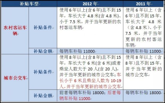 附表:2011-2012年客車報(bào)廢更新補(bǔ)貼車輛范圍及補(bǔ)貼標(biāo)準(zhǔn)對(duì)比