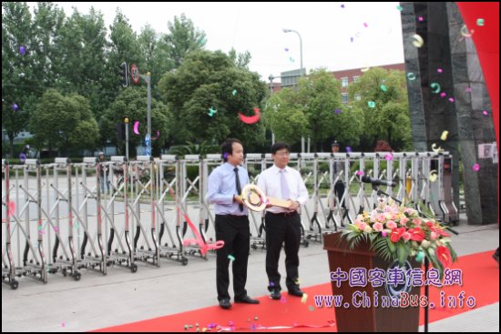 申龍客車陳大城總經理向云南機場汽運王偉總經理交付新車鑰匙