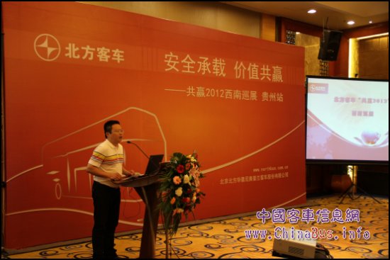 6月16日,北方客車“共贏2012”西南巡展貴陽站產(chǎn)品推介會(huì)于貴陽世紀(jì)金源大酒店隆重舉行,這標(biāo)志著北方客車以“安全承載、價(jià)值共贏”為主題的西南巡展第二站——貴陽站拉開帷幕。