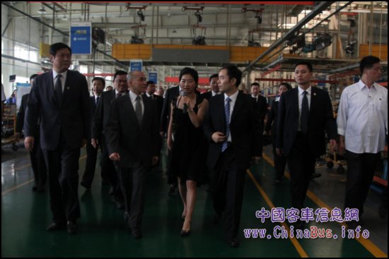 隨后,在河南省領(lǐng)導(dǎo)及宇通公司領(lǐng)導(dǎo)的陪同下,西哈莫尼一行來(lái)到了高檔車間,工人們正在忙碌著焊接客車的骨架車身。一輛輛組裝完成的宇通客車一字排開,像是在迎接遠(yuǎn)方來(lái)的貴客。西哈莫尼興趣盎然地打量著車間內(nèi)的機(jī)器,觀看著宇通現(xiàn)代化的生產(chǎn)線和管理模式,情不自禁地贊嘆:“宇通廠區(qū)規(guī)模宏大,生產(chǎn)秩序井井有條,客車品類很豐富,令人印象深刻!
