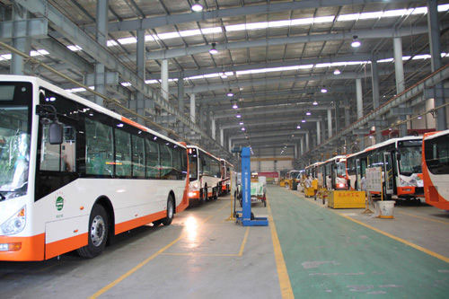 廣汽客車寬敞的廠房內,一輛輛嶄新的節(jié)能公交車排列成行,整裝待發(fā)。