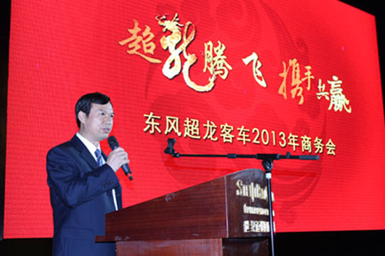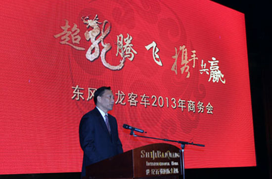 2013年10月17日,以“超龍騰飛、攜手共贏”為主題的東風(fēng)超龍客車商務(wù)會在湖北·十堰隆重召開。共有來自全國各地的近500名來自全國各地交通主管部門、客運(yùn)、旅游、公交公司領(lǐng)導(dǎo)、經(jīng)銷商朋友,以及十堰市政府領(lǐng)導(dǎo)、十堰經(jīng)濟(jì)技術(shù)開發(fā)區(qū)領(lǐng)導(dǎo)、東風(fēng)實(shí)業(yè)公司領(lǐng)導(dǎo)、東風(fēng)超龍客車公司的中層以上干部、業(yè)務(wù)經(jīng)理出席本次商務(wù)會議。