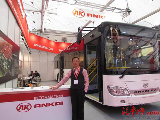 在安凱展臺,記者看到,安凱此次帶來一款電動客車和一款雙層觀光客車。安凱國際公司副總經(jīng)理李國鈞對記者說:“我們這款電動客車已在國內(nèi)銷售1000多輛,產(chǎn)品技術(shù)比較成熟。安凱對于純電動車進入歐洲市場持謹慎態(tài)度,目前在歐美市場實現(xiàn)銷售的產(chǎn)品還是傳統(tǒng)柴油客車,畢竟柴油客車仍是歐美客車市場主流產(chǎn)品。