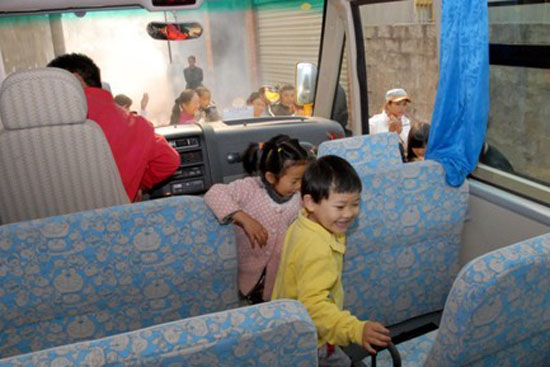孩子們乘“大鼻子”,在園門口迎接的西郊啟蒙幼兒園園長安從會安心地笑了。