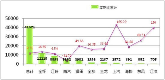 2月份,輕型客車整車產(chǎn)銷18559輛和18312輛,生產(chǎn)同比下降10.80%,銷售同比下降10.17%。1-2月輕型客車整車?yán)塾?jì)產(chǎn)銷分別為43353輛和41321輛,產(chǎn)銷同比累計(jì)增長(zhǎng)16.62%和9.71%。累計(jì)銷售前三甲是金杯股份、江西江鈴和南汽集團(tuán)。其中金杯股份累計(jì)銷售12115輛,同比累計(jì)增長(zhǎng)16.65%;江西江鈴累計(jì)銷售8898輛,同比累計(jì)增長(zhǎng)6.54%;南汽集團(tuán)累計(jì)銷售5332輛,同比累計(jì)下降31.72%。北汽福田和廈門金龍分列四、五位,累計(jì)銷量分別為3981輛和2187輛。