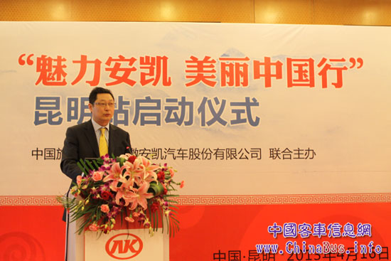 彩云之南我心的地方,孔雀飛去回憶悠長。4月16日,“安凱美麗中國行”活動在春城昆明隆重啟動。本次活動由安凱客車和中國旅游報社聯(lián)合主辦,以傳播綠色旅游文化,推進(jìn)綠色旅游裝備產(chǎn)業(yè)發(fā)展為宗旨。該活動將從昆明啟程,穿行中國最美風(fēng)景線和著名旅游城市,將綠色環(huán)保客車的魅力帶到祖國各地,并倡導(dǎo)和呼吁推進(jìn)綠色發(fā)展、循環(huán)發(fā)展、低碳發(fā)展的環(huán)保理念。這也是客車行業(yè)首次以產(chǎn)品為載體,在全國范圍內(nèi)進(jìn)行的一場具有重大影響力的環(huán)保倡議和推廣活動。