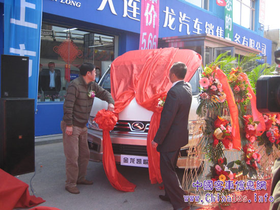 伴隨紅衣鼓手的激情表演,金龍凱歌上市儀式(大連站)暨大連鑫龍汽車開業(yè)慶典于2013年3月28日在大連鑫龍4S店隆重舉行!這是金龍凱歌全國上市的第三站,也是吹響金龍凱歌進軍東北市場的號角。本次發(fā)布的金龍凱歌豪華商旅車,分為豪華型和商務(wù)型兩款車型,座位數(shù)為13—15座,提供2.4L汽油機和2.5L柴油機兩種動力。