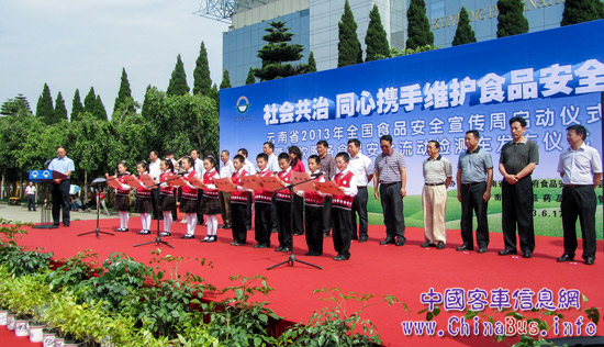 6月17日下午,云南省2013年全國食品安全宣傳周啟動(dòng)儀式暨餐飲服務(wù)食品安全流動(dòng)檢測(cè)車發(fā)車儀式在昆明舉行。在啟動(dòng)儀式現(xiàn)場(chǎng),17輛大金龍專用車整裝待發(fā),每輛車內(nèi)均配有光譜檢測(cè)、農(nóng)殘檢測(cè)及動(dòng)植物檢驗(yàn)等設(shè)備,為今后云南省加強(qiáng)餐飲服務(wù)食品安全提供長期流動(dòng)檢測(cè)服務(wù)。