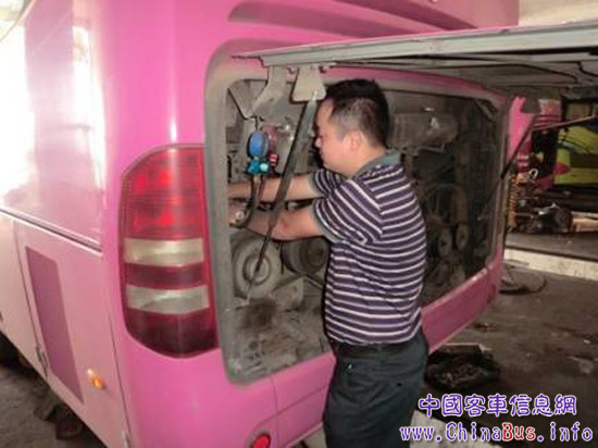 空調(diào)系統(tǒng)作為夏季車輛高負(fù)荷運(yùn)轉(zhuǎn)的部件,其工作狀況直接影響到乘客的乘坐舒適性及用戶運(yùn)營質(zhì)量的好壞,因此針對空調(diào)系統(tǒng)的檢查、保養(yǎng)等工作顯得尤為重要。一般來說車載空調(diào)的主要問題是:一、制冷不夠,二、空調(diào)有異味;亞星客車考慮到這些問題會給駕駛?cè)藛T和乘客帶來煩惱甚至?xí)绊懮眢w健康,從而影響到用戶的經(jīng)營質(zhì)量和收益水平;專項組織“清涼一夏”空調(diào)免費(fèi)服務(wù)活動,安排專業(yè)技術(shù)人員上門服務(wù),免費(fèi)進(jìn)行檢查、保養(yǎng)、消除故障隱患等服務(wù),并對用戶進(jìn)行空調(diào)保養(yǎng)和操作培訓(xùn)。
