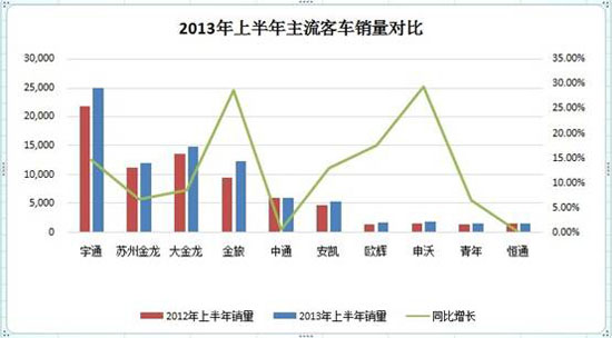 從行業(yè)角度來看,在近兩年商用車市場整體不景氣的大勢中,客車一直保持著不錯(cuò)的市場表現(xiàn),但今年上半年商用車整體市場增長6.7%的大勢之下,客車市場的增長卻表現(xiàn)平平。
