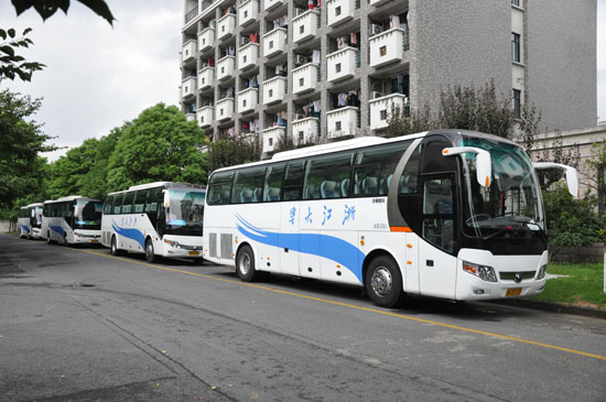 迎新期間,一輛輛嶄新的宇通客車搭載著浙大“fresh man”駛?cè)肓诉@座百年學(xué)府,她們穿梭于綠樹(shù)白墻互相交錯(cuò)、藍(lán)天碧水相互映襯的美麗浙大中,為剛?cè)胄iT的新生帶來(lái)了“美麗浙大”的初印象。