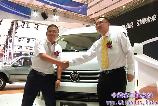 福田汽車集團品牌副總監(jiān)霍焱與東創(chuàng)建國汽車集團副總裁趙錦輝為蒙派克S級揭幕
