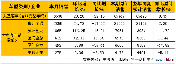 大型客車銷量情況: