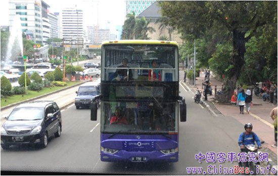2014年初五輛嶄新的亞星雙層巴士抵達(dá)雅加達(dá)丹戎不碌(TANJUNG PRIOK)。作為印尼首都,雅加達(dá)旅游機(jī)構(gòu)歡迎五輛雙層觀光巴士的到來(lái),這種很有遠(yuǎn)見(jiàn)的做法成為在印尼的一道風(fēng)景線,也積極的推動(dòng)外國(guó)游客參觀城市數(shù)量的翻倍。