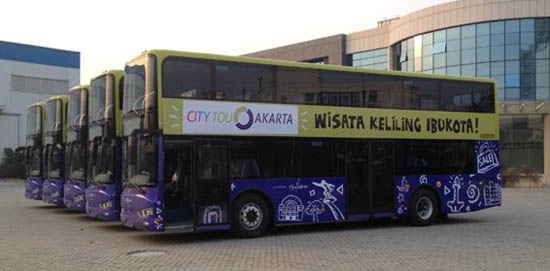 2014年初五輛嶄新的亞星雙層巴士抵達(dá)雅加達(dá)丹戎不碌(TANJUNG PRIOK)。作為印尼首都,雅加達(dá)旅游機(jī)構(gòu)歡迎五輛雙層觀光巴士的到來,這種很有遠(yuǎn)見的做法成為在印尼的一道風(fēng)景線,也積極的推動外國游客參觀城市數(shù)量的翻倍。