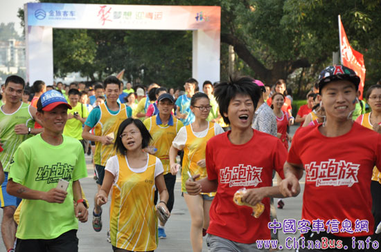 “今天,我們相聚在美麗的閩江公園進行一場充滿激情的樂活跑步,傳播綠色環(huán)保的正能量。也期望通過跑步這種輕松而富有魅力的運動形式,讓更多市民關(guān)注環(huán)保問題,走進陽光,走進自然,以健康環(huán)保的生活態(tài)度,享受多彩生活!遍_跑儀式上,廈門金龍旅行車有限公司的一名普通員工代表跑步者祝福青運,宣誓夢想。