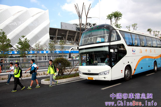 吳樹群師傅和他的海格客車一起為青運會加油助力