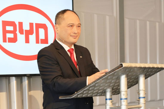 比亞迪歐洲公司總經(jīng)理何一鵬在投放運營儀式上發(fā)表講話
