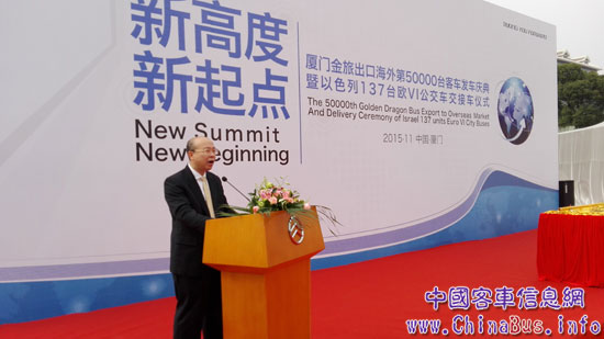 廈門金旅第50000輛客車出口海外發(fā)車慶典暨以色列137輛歐VI公交車交接車儀式