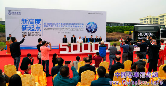 11月30日,廈門金旅第50000輛客車出口海外發(fā)車慶典暨以色列137輛歐VI公交車交接車儀式在廈門金旅海滄基地隆重舉行。這標志著廈門金旅成為國內(nèi)大中型客車業(yè)為數(shù)不多海外出口總量突破5萬輛的企業(yè)之一,也標志著中國自主品牌客車出口達到新高度,更標志著在“一帶一路”戰(zhàn)略下,“中國制造”客車再結(jié)碩果。